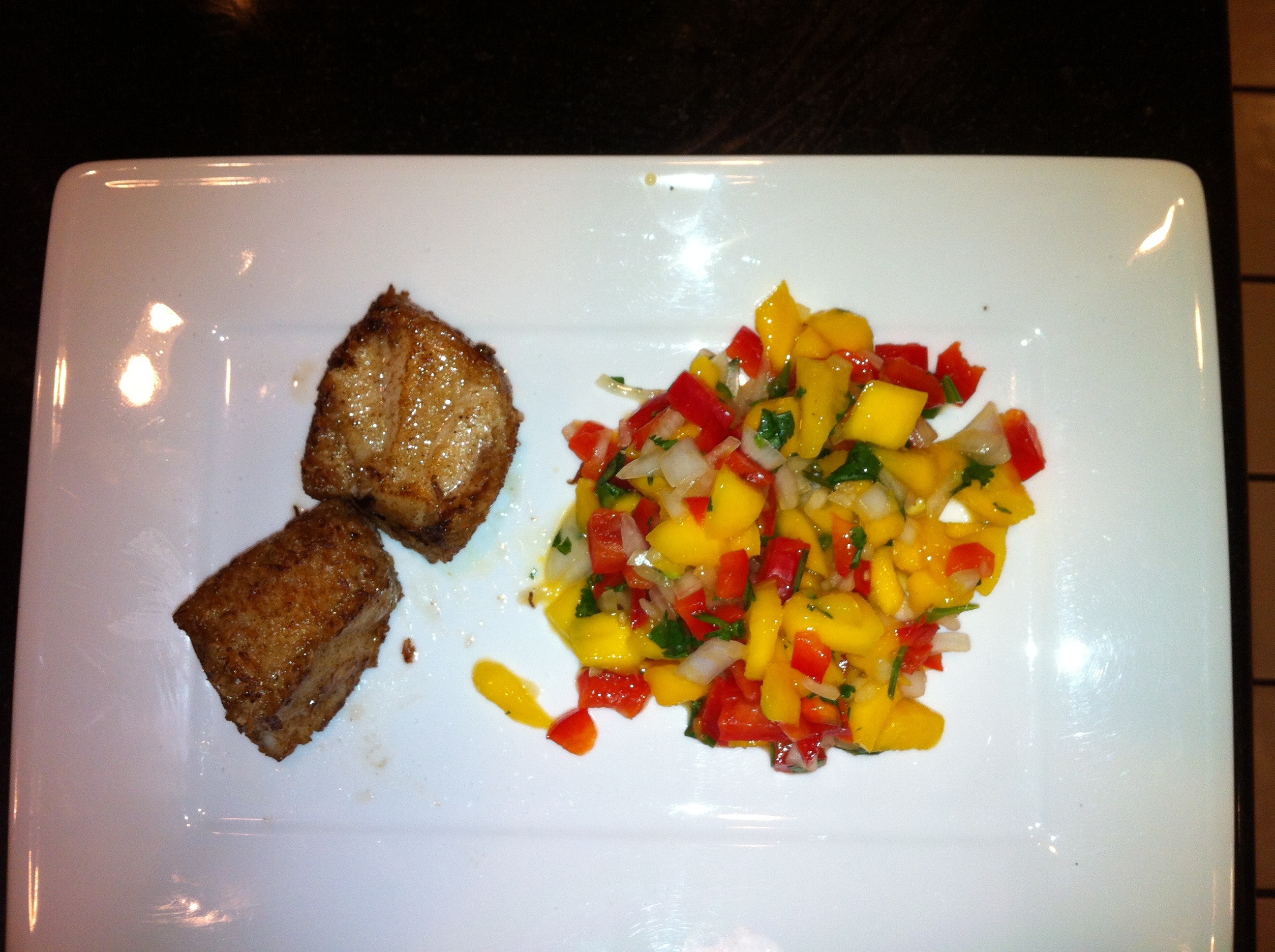This is a coconut crusted sea bass with mango salsa for 4 people. Very easy but reliant on a great piece of fish. Shout out to Zach for the basic recipe.