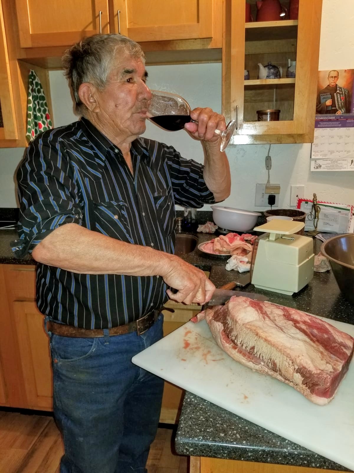 This is a family recipe that has been adapted and scaled down from the original. It’s a barbacoa recipe, the perfect slow cooked meat for gatherings. For those feeling their oats, the original has the same format as below except you use a full cow buried in a pit and custom sealed barrels that can hold up to 200 lbs of beef each, cooked overnight using a cord of mesquite wood, 50 lbs of onions, 3 gallons of wine, 6 gallons of jalapeno and whiskey to keep the guys warm who tend to it overnight. My parents donated a cow each year to the big church fund raiser. My dad and his cohorts would go out cut a cord of wood then go find a suitable cow in the herd, bring it around, shoot it, butcher it, cut it up and cook it down. Here now is a version for feeding less people that just takes a trip to the grocery store and a full morning. This is a very simple process but it does take two days.
